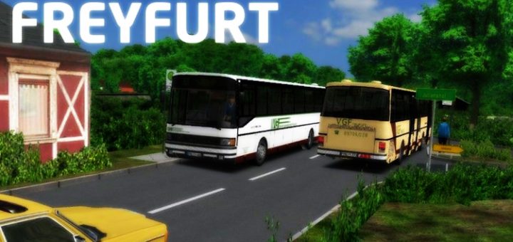 Freyfurt Karte für Omsi 2. Eine detailreiche Karte mit mehreren Linien und abwechslungsreicher Umgebung. Linien:62 – 10 Minuten (ZOB → Nebelau)63 – 25 Minuten (ZOB → Kohldorf), 30 Minuten (ZOB → Bahnhof)65 – 10...